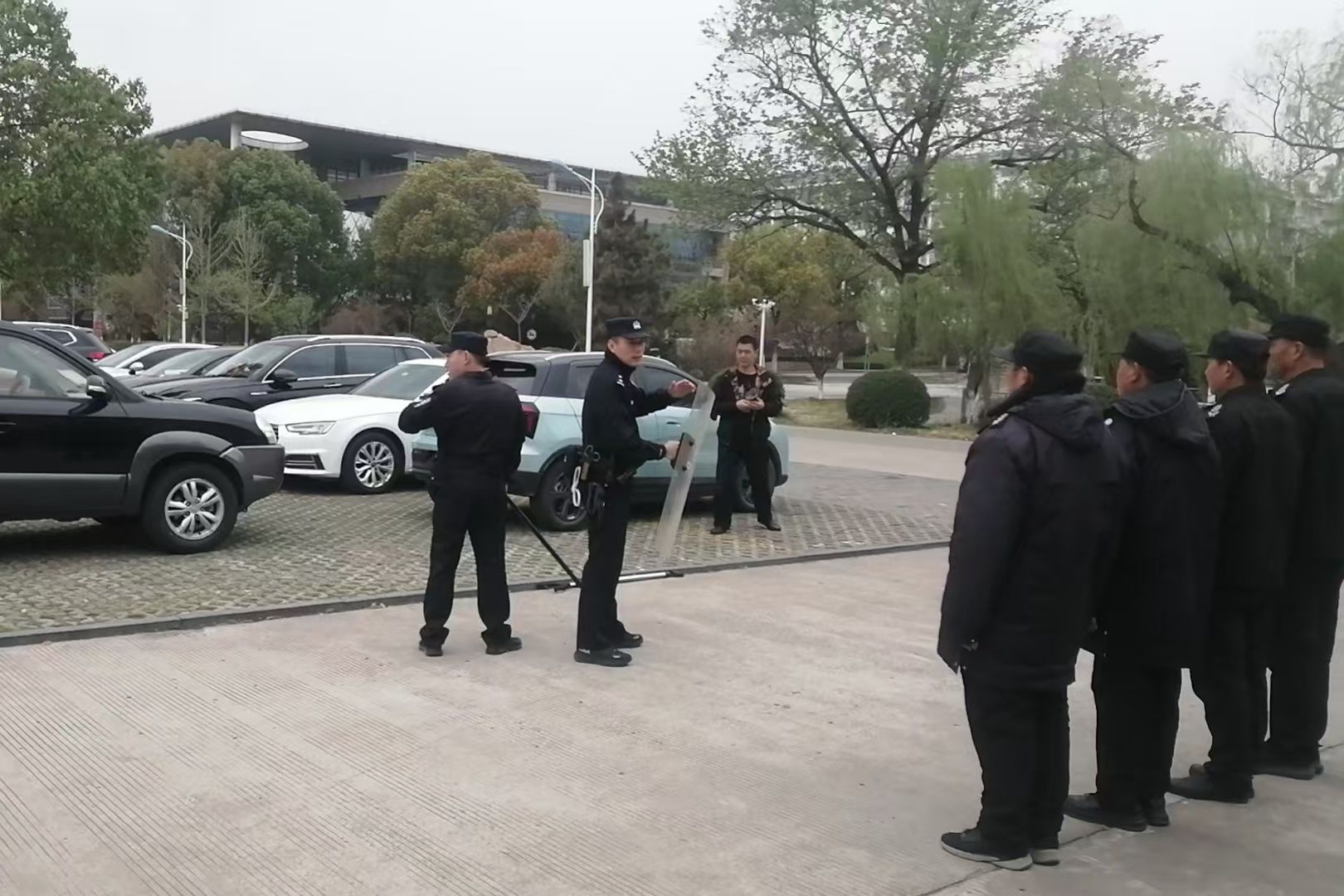 3月28日下午,保卫处邀请府城派出所民警给学校安保队员在凤阳校区西区小广场开展防暴恐知识培训及实操演练。