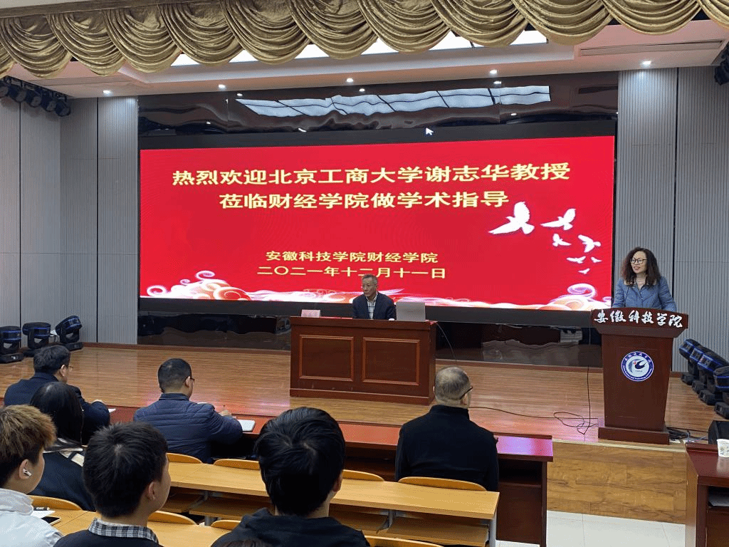 2021年12月11日上午,北京工商大学原副校长、现任教育部工商管理学科指导委员会副主任委员谢志华教授应邀莅临我校财经学院指导新商科专业建设,安徽财经大学会计学院院长翟胜宝教授随行指导。谢志华在敏行楼A一楼报告厅做了题为“新技术与新商科”的学术讲座,BB手机官方网站_BB(中国)党委委员、副校长黄友锐、教务处处长赵伟峰、财经学院党政领导和全体教职工以及2021级会计学、2021级金融工程专业学生参加报告会。财经学院院长郝世绵主持报告会。