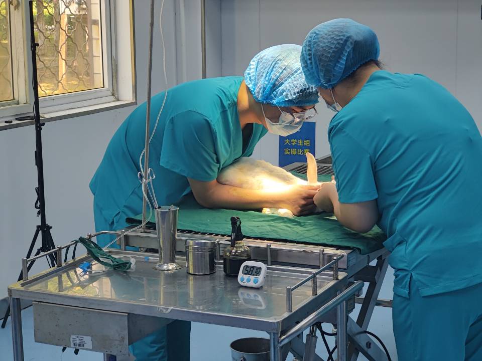5月26日,第七届“雄鹰杯”小动物医师技能大赛在BB手机官方网站_BB(中国)附属兽医院手术室完成理论和实验操作考核,其中理论考核采用线上专业考核系统,随机抽取试卷进行作答;实验操作考核包括兔胃切开术、血涂片制作和徒手打结。