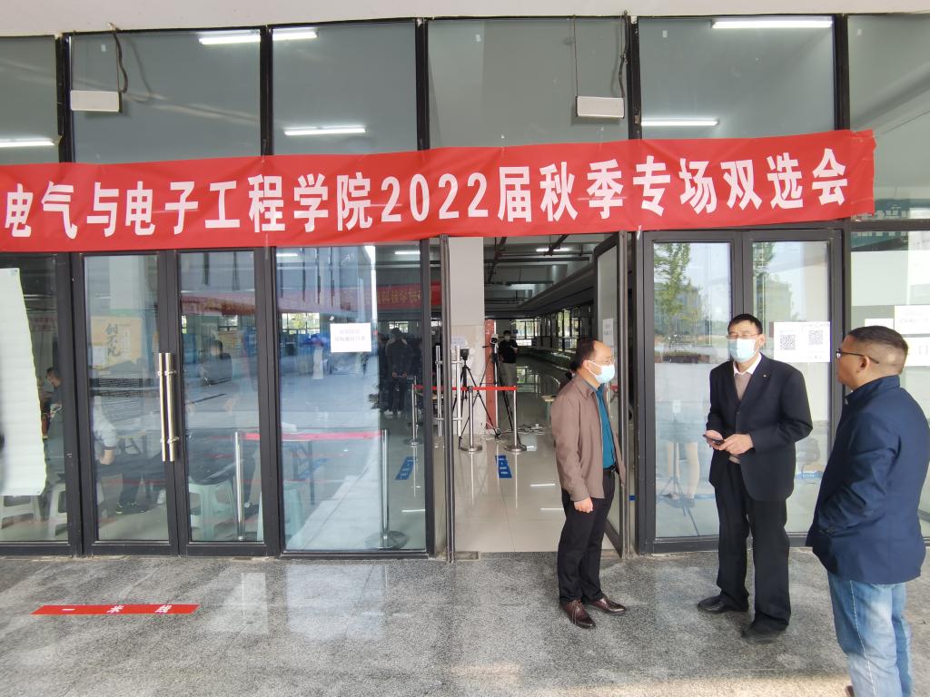 双选会开展过程中,电气与电子工程学院党委书记骆海邦,党委副书记、副院长(主持工作)夏显明,党委副书记、纪委书记尚磊,副院长国海深入双选会现场,与部分用人单位深入交流,了解企业当前招聘面临的问题以及本次双选会取得的成效。骆海邦、夏显明提醒毕业班级辅导员,要积极动员毕业生参与到双选会中,对毕业工作要早抓、抓早;要及时关注毕业生简历投递情况,跟踪指导有意向的同学及时签约;要对未到现场的学生加强教育引导,增强毕业生就业意愿;要持续跟踪企业用人需求,做好毕业生与企业间的对接工作。