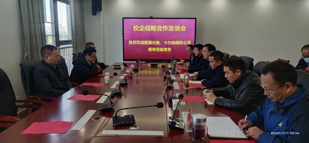 11月11日上午,丽瀑光能(常熟)有限公司总经理周敏、卡尔森国际创新产业园总裁张强率团来电气与电子工程学院洽谈校企战略合作。校党委委员、副校长黄友锐、电气与电子工程学院党委副书记、副院长(主持工作)夏显明、副院长国海及各系室主任出席了座谈交流会。