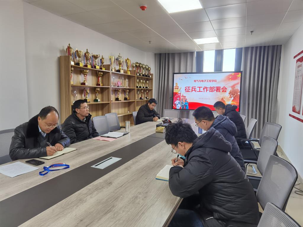 为切实完成2022年度征兵工作任务,全面落实学校征兵工作要求,12月27日,电气与电子工程学院召开2022年度征兵工作部署会。学院党委书记骆海邦,党委副书记、纪委书记尚磊,副院长国海及全体毕业班辅导员参加了会议。