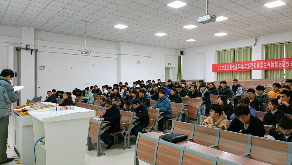为了全面推进落实“三全育人”,促进学生成长成才,12月29日,电气与电子工程学院于致知楼C111举办了光电信息科学与工程专业本科生学业导师制启动仪式暨师生见面会。电气与电子工程学院副院长(主持工作)夏显明、光电工程系主任李勇及全体导师、导生及21级光电专业新生参加了会议,会议由辅导员陈更强主持。