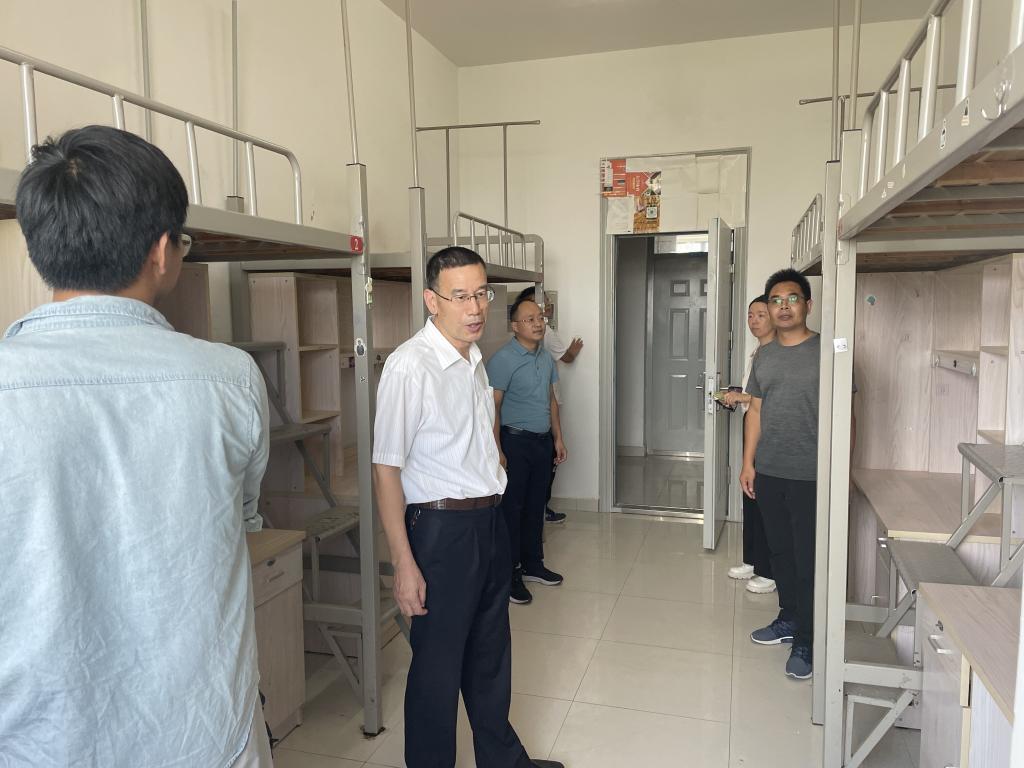 加强宿舍安全管理是一项非常重要的工作。学院领导深入新生宿舍,对学生宿舍安全隐患进行全面深入排查、不留死角。成员们在学院领导的指导下,认真地检查了桌椅、凳子、衣柜、插座等设备,确保其是否安全完好,同时将宿舍物件摆放整齐。