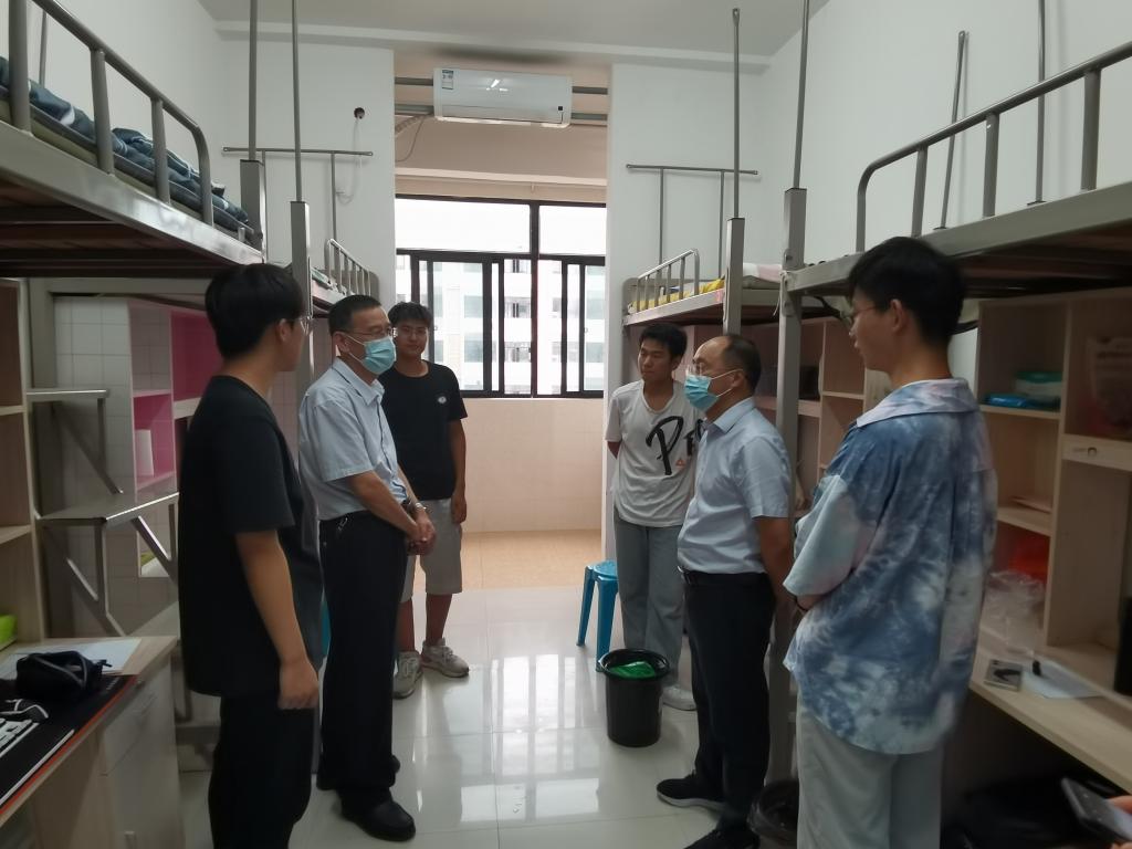 “第一次来学校感觉怎么样啊?对新宿舍满不满意?有没有遇到什么困难?”每到一个宿舍,学院领导和老师都耐心地询问每位新生的进校感受、来校方式、日常需求、饮食生活、兴趣爱好等情况,同学们也热情地与领导们分享他们初入大学后的感受,并纷纷表示学院提供的服务让他们感受到了学院的温暖与关怀。同时,他们也表示将会尽快调整自身状态,以焕然一新的面貌迎接美好的大学生活。最后学院领导也希望各位新生能够树立远大理想,珍惜大学时光,认真学习,并积极参加社团活动去锻炼自己的能力,发扬新时代大学生积极向上、努力拼搏、敢于创新的精神。