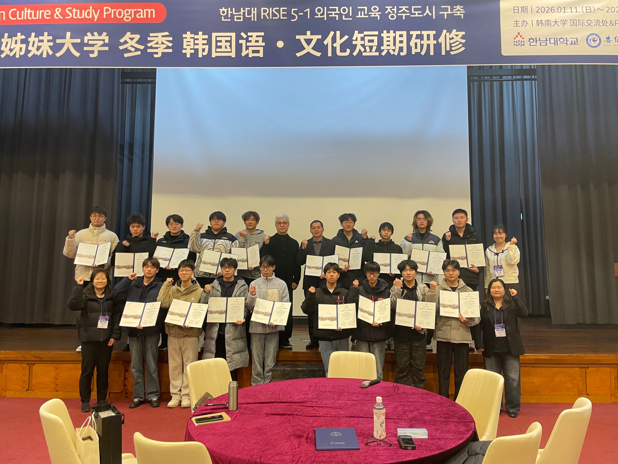 新年伊始,万象更新。为了积极相应国家教育对外开放战略举措,统筹“引进来”与“走出去”,推动我校中外合作办学项目提质增效,培养全球竞争力人才,1月11日—17日,我校17名学生跨越山海,在智能制造学院党委副书记张程的带领下,远赴我校中外合作办学项目合作方韩国韩南大学开展了一场为期7天、内容丰富的留学先锋营活动。