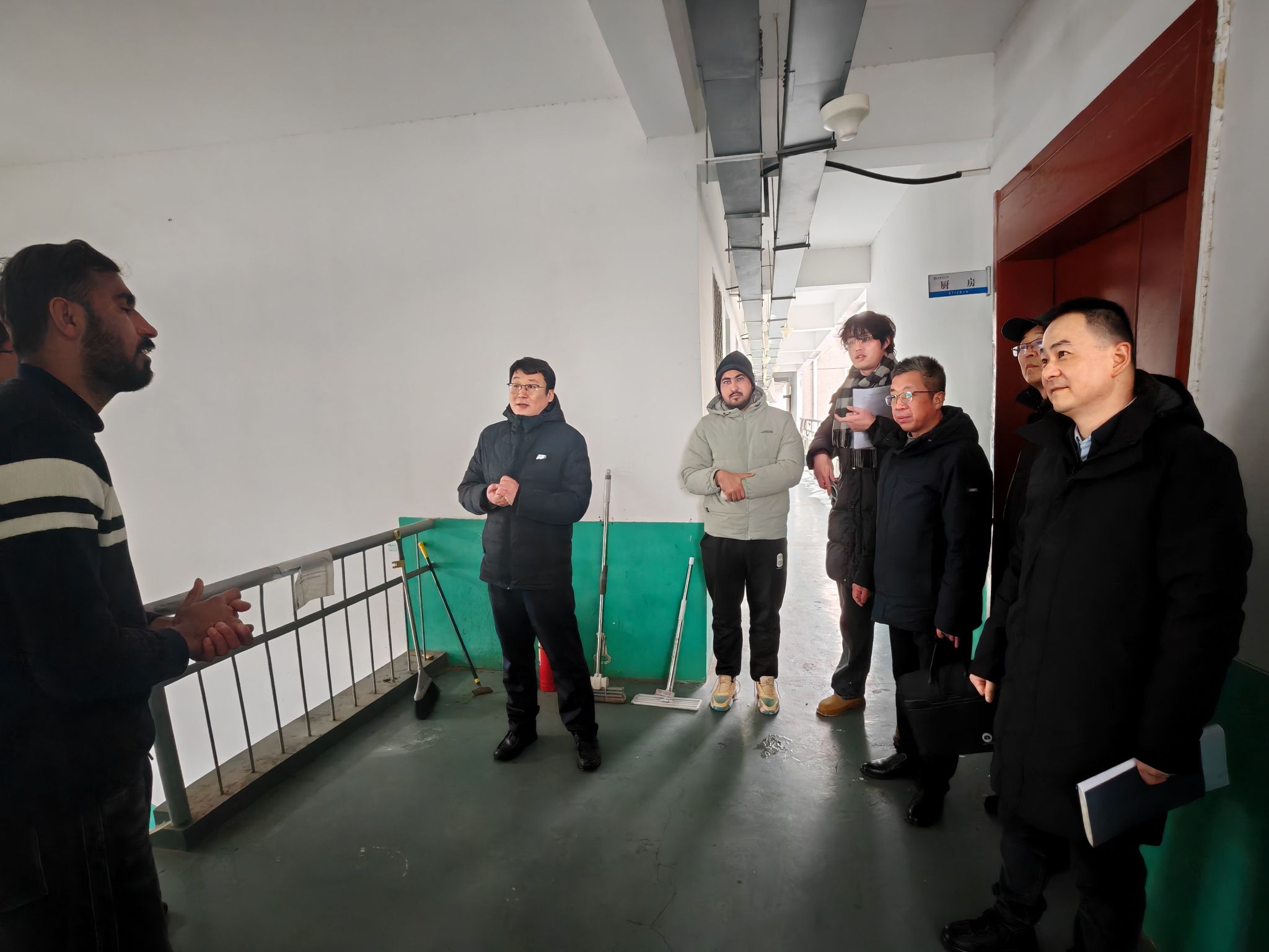 岁末寒冬,情系学子。为进一步加强寒假期间留学生安全管理工作,排查安全隐患,确保在校留学生度过一个平安、祥和的中国年,1月20日,我校党委委员、副院长方鸣率队深入留学生公寓开展安全检查与走访慰问工作。研究生处处长张春雨、保卫处处长余德锋、后勤保障部主任姚文均以及国际交流与合作处处长何世潮陪同检查。