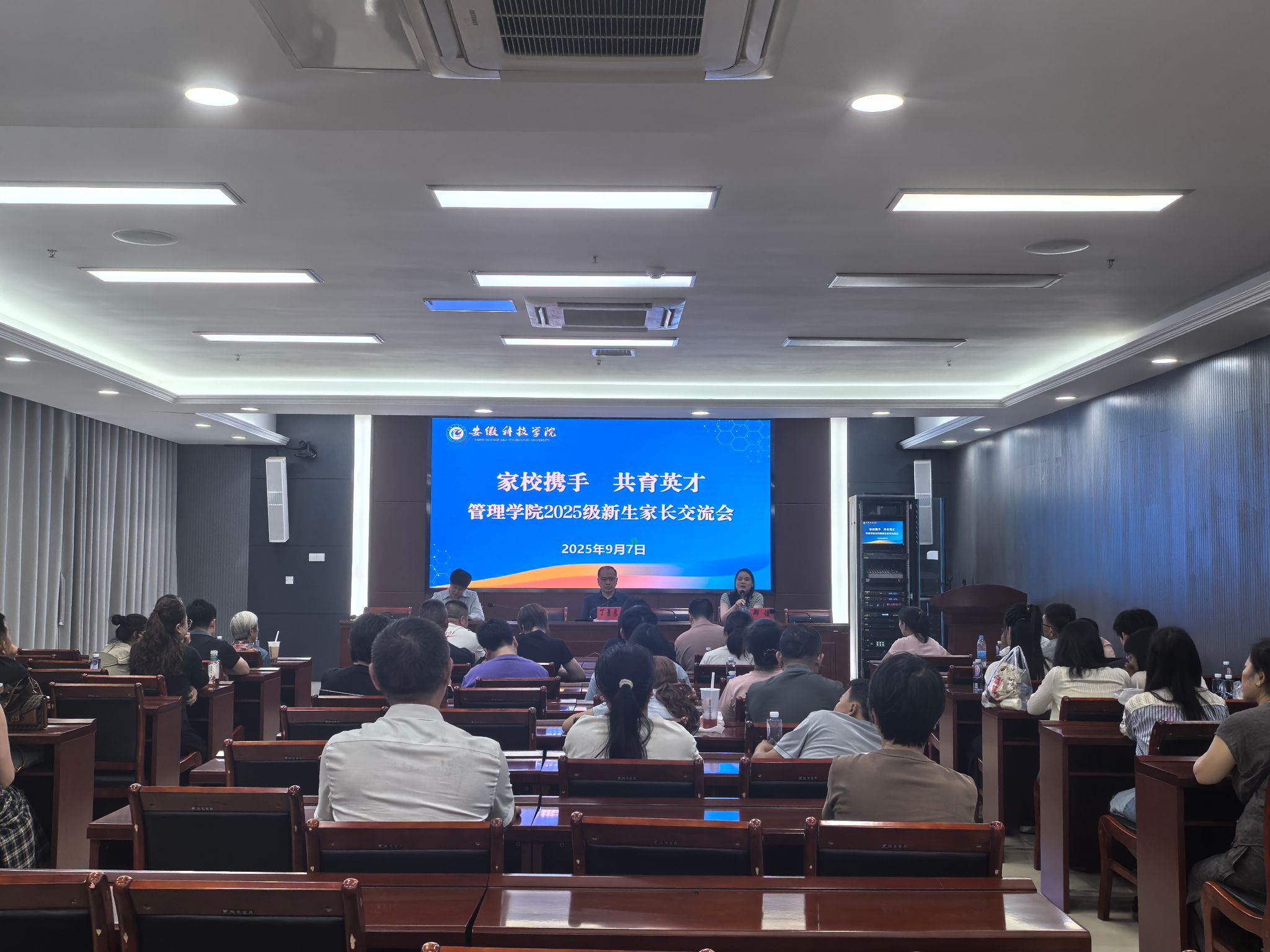 为加强家校联动、凝聚育人共识,助力新生全面成长,9月7日,管理学院于西辅楼111会议室组织召开2025级部分本科新生家长交流会。会议由管理学院党委副书记陶漫主持,管理学院党委书记丁景良、管理学院副院长郑谦、新生辅导员以及2025级新生家长共同参会。