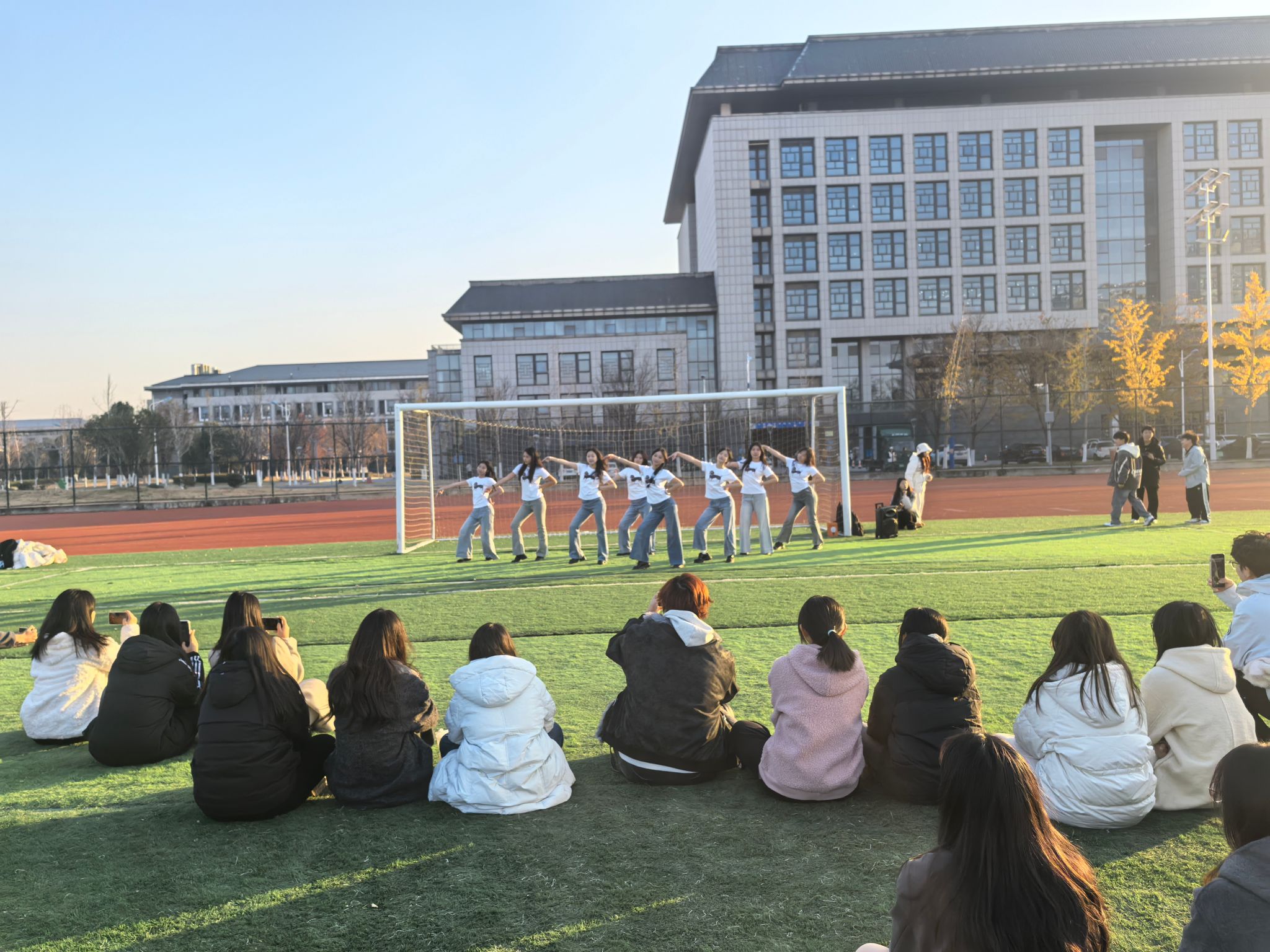 为深入推进心理健康教育工作,帮助学生释放压力、感受艺术之美,12月3日下午4时,管理学院与化学与材料工程学院在龙湖校区小操场联合举办“压力‘管’退,心‘化’怒放”韶华织梦户外艺术节。活动以艺术展演与心理互动相结合的形式展开,吸引了近二百名师生参与,在歌声、诗声与欢笑声中,共同在冬日的暖阳下展开了一场心灵与艺术交融的旅程。