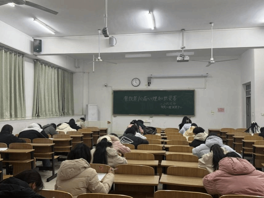 为普及心理健康知识、以赛促学,管理学院于12月14日晚17:00-18:00在致知楼C103、C105、C107教室举办了第十届心理健康知识竞赛。竞赛采用笔试形式,内容涵盖心理学基础知识、常见心理问题应对、自我调适技巧等。考场内同学们沉着作答,展现了扎实的知识储备,最终脱颖而出的六名优秀选手将代表学院进入校级决赛。