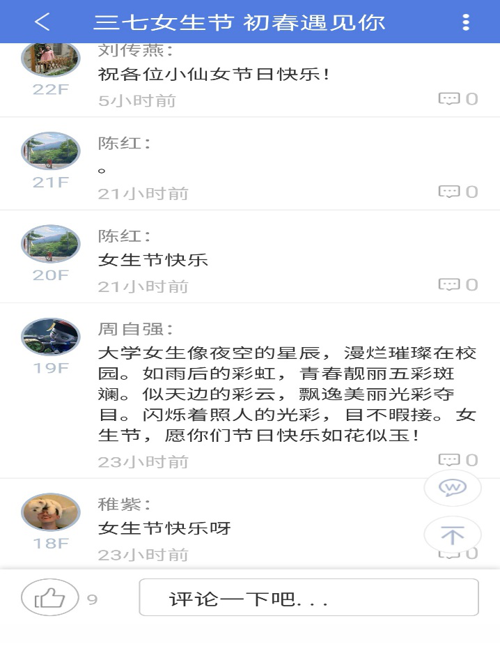 活动自2月底策划开始,就取得良好效果。全院各班男生为女生献上节日祝福语,女生则上传个人生活照片,心理委员联合会录制祝福视频,全院同学积极响应,主动参与。此外,机械工程学院学生会、青年志愿者协会、体育运动训练协会积极响应,共同献上祝福。活动于傍晚进入尾声,心理委员联合会副会长李梦兰为学院每位女生赠送一份节日礼物,整个活动在温馨、欢快地气氛中圆满结束。
