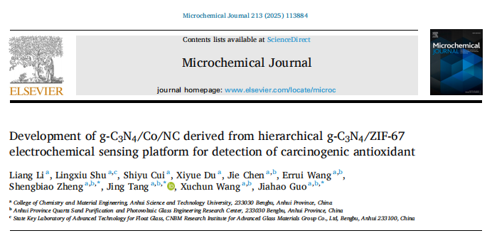 5月10日,化学与材料工程学院唐婧教授课题组2021级本科生李亮同学以第一作者身份在分析化学领域知名期刊《Microchemical Journal》(SCI二区,影响因子:4.9)上发表题为《Development of g-C3N4/Co/NC derived from hierarchical g-C3N4/ZIF67 electrochemical sensing platform for detection of carcinogenic antioxidant》的研究论文。