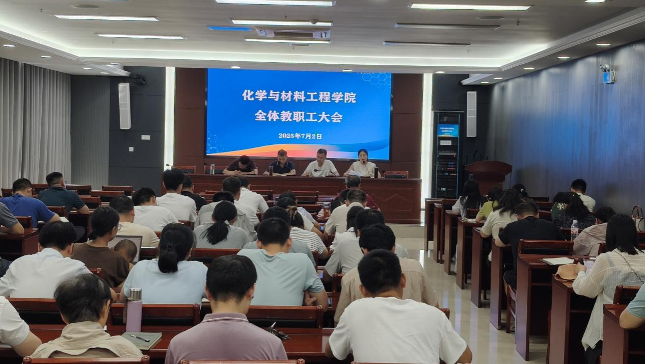 为保障暑期各项工作平稳有序推进,全面统筹做好教学、科研、学科、实验室安全及留校学生管理等重点工作,化学与材料工程学院于7月2日下午在西附楼111报告厅召开全体教职工大会。会议由学院党委书记黄树桥主持。
