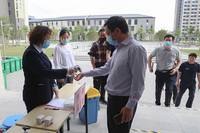 在龙湖校区,黄远友先后来到学生返校报到点、食堂、学生公寓、超市、洗浴中心等地,实地查看了现场环境布置、防疫物资储备,向现场负责同志了解学生返校工作落实、员工宣传教育情况。黄远友要求,各部门对检查中发现的一些不完善的地方,要及时整改,同时督促相关单位要加强员工防疫教育,熟悉工作流程,做到熟练操作。