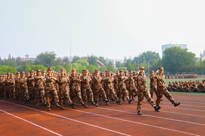 迎着曦辰,斑斓的军装,笔直的腰身,挺起的胸膛,铿锵有力的步伐,每个动作,每个眼神都在烈阳下定格,展现安科学子的傲骨。回眸初入校园稚气未脱的我们,汗水打磨了棱角,这是青春的回忆。