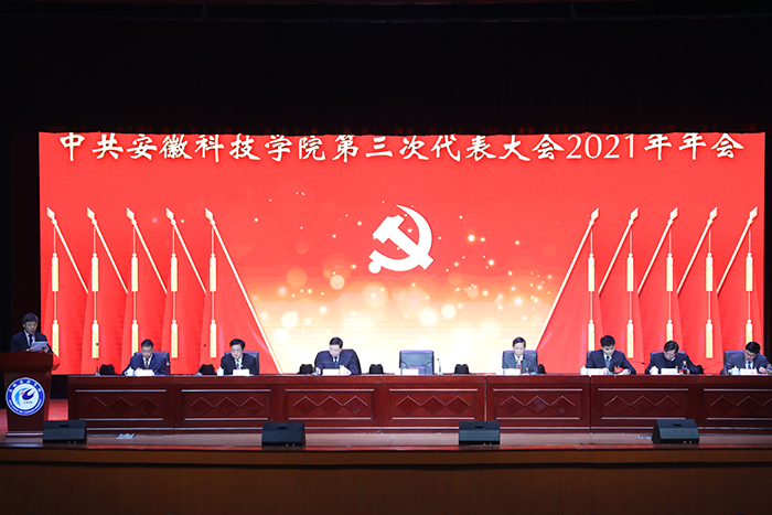 1月16日上午8时,中共BB手机官方网站_BB(中国)第三次代表大会2021年年会在凤阳校区大学生活动中心开幕。党委书记蒋德勤,党委副书记、院长李震,党委委员、副院长黄远友,党委委员、纪委书记、监察专员王强,党委委员、副院长黄友锐,党委委员、副院长李升和,党委委员、宣传(统战)部部长卫胜,党委委员、组织部部长钱锐出席会议并在主席台就座。