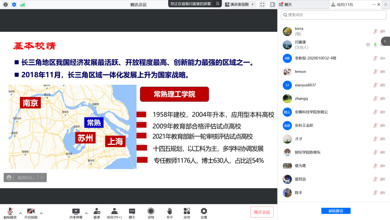 黄文祥教授作了《本科教育教学审核评估学校组织评建及改进要点》专题讲座。他首先从“做好顶层设计”“建立健全组织架构”“明确评估工作任务”三个方面对学校评估工作组织建立及工作职责进行了介绍,建议学校评估工作应统一领导、统一指令、分工负责、同步推进。他通过解读新一轮审核评估实施方案,指出新一轮审核评估在评估导向、评估内涵、评估类型、评估方法、评估功能等方面出现的新变化,强调这些变化体现了新时代高等教育的新思想和新要求,需要深刻领会和理解把握。他以常熟理工学院参加新一轮审核评估试点的经历,围绕“学校申请、自评自建、线上评估、入校评估、反馈结论、限期整改、督导复查”七个工作环节,从新一轮审核评估方案中的审核重点解读,全校各单位、各部门及全体师生员工在审核评估自评自建中的工作任务和要求,学校在线上评估和入校评估的工作准备等方面做了详细介绍,并从参与者的视角分享了新一轮教育教学审核评估的参评体会。黄文祥的报告站位高,内容实,指导性强,可操作性强,对学校审核评估工作开展具有很强的指导意义。
