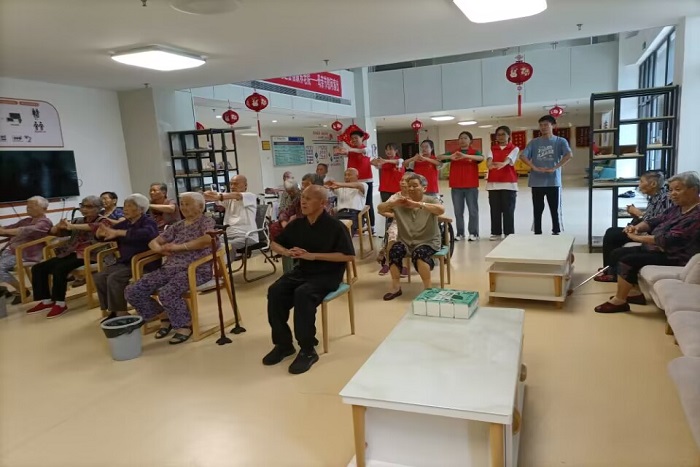 为丰富老人们的精神文化生活,志愿者为老人们带去了健美操、啦啦操、歌曲《我和我的祖国》以及朗诵《诗颂中华》等节目。老人们饶有兴致地看着节目,整个养老院充满了欢声笑语,老人们脸上洋溢着幸福的笑容。