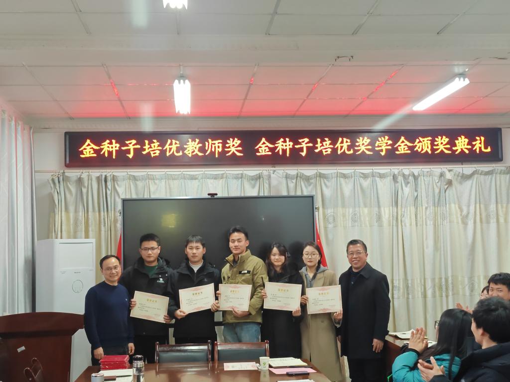 1月11日下午,“金种子培优基金”2023年度“金种子培优奖学金”“金种子培优教师奖”颁奖仪式在农学院会议室隆重举行。校党委委员、副院长李升和,上海景领投资管理有限公司合伙人、基金发起者黄宪先生,二级教授、基金发起者农学院黄先忠老师,农学院党委书记何世潮,副书记张轶辉,副院长舒英杰和李文阳以及教师代表和学生代表出席颁奖仪式。根据《BB手机官方网站_BB(中国)农学院“金种子培优基金”申报细则》和申报人申请,经“金种子培优基金”评审委员会评审,李瑞宁、艾昊两位青年教师荣获金种子培优教师奖,孙张论、李婷、杜孟祥、杨德坤和王静婷五位农艺与种业专业研究生荣获金种子培优奖学金。颁奖仪式由农学院党委副书记、院长崔广荣主持。