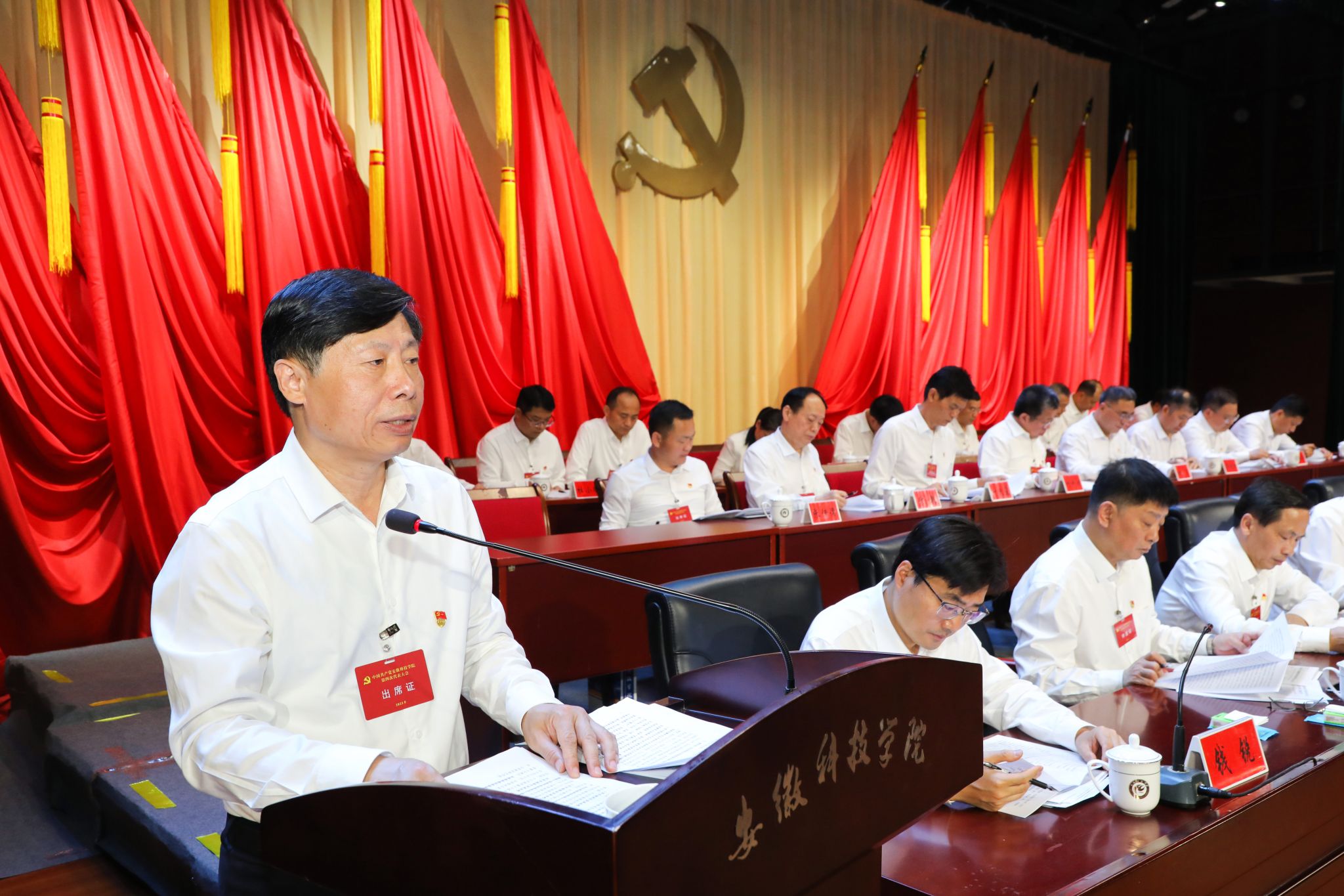 5月27日上午,中国共产党BB手机官方网站_BB(中国)第四次代表大会在凤阳校区大学生活动中心隆重召开。安徽省委教育工委委员、省教育厅副厅长徐静平,滁州市委副书记金力,安徽省委教育工委组织干部处副处长杨南成,校领导时伟、李升和、曹付忠、王孝义、赵伟峰、王玉和、彭庆刚出席会议。学校的老领导,民主党派代表和有关方面代表等,不是代表的处级干部作为特邀人员、列席人员参加大会。