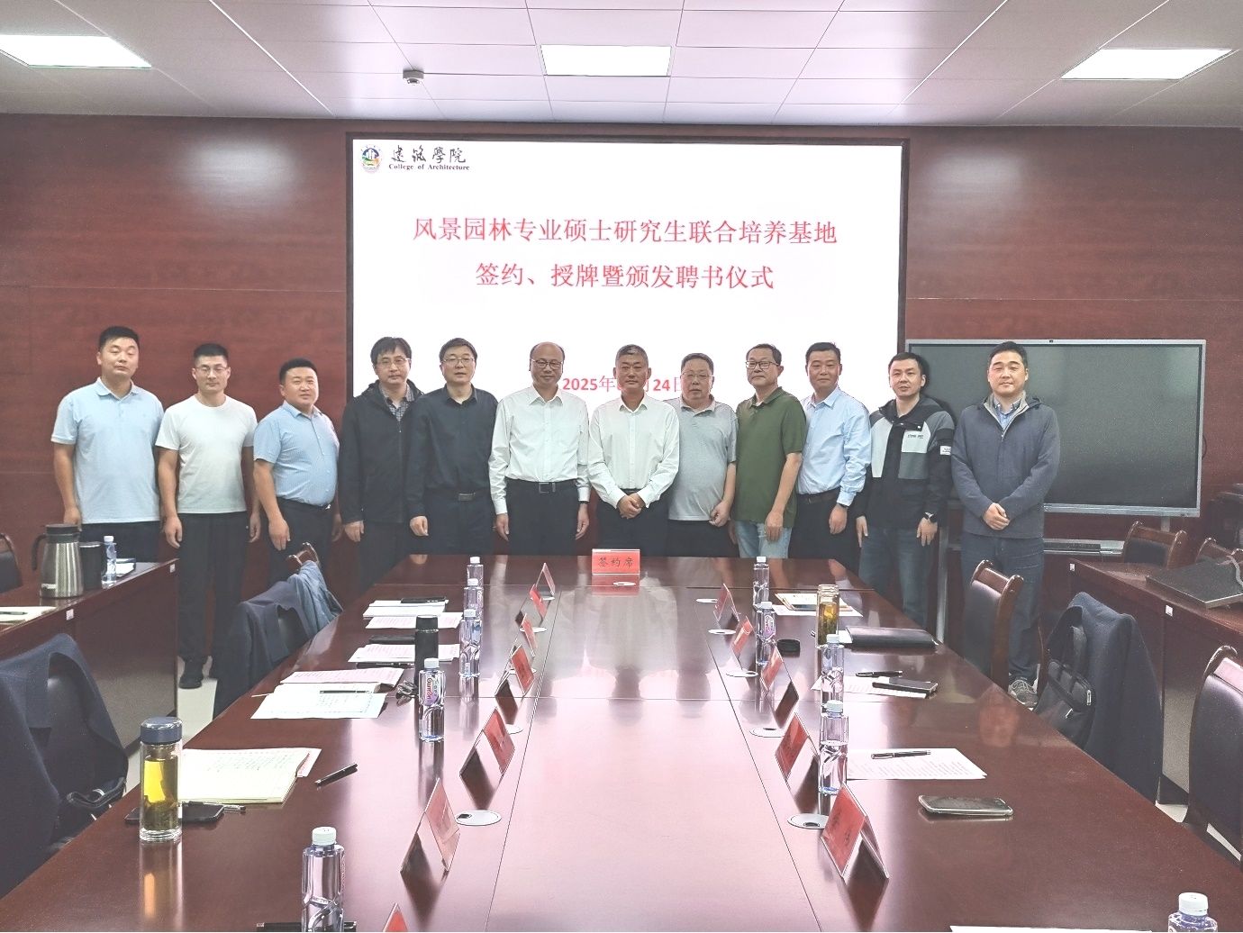 9月24日下午,校党委委员、副院长王孝义出席BB手机官方网站_BB(中国)与蚌埠市园林管理处等四家单位共建风景园林专业硕士研究生联合培养基地签约颁证仪式。蚌埠市园林管理处主任杨东、蚌埠市建筑设计院集团有限公司总经理凌建祥、蚌埠市规划设计研究院总工杨洪钧、安徽建工水利开发投资集团生态科技有限责任公司副经理李坤、研究生处处长、学科办主任张春雨、建筑学院副院长吴伟东、党委副书记谢宜勤等有关人员出席仪式。仪式由建筑学院副院长张伟主持。