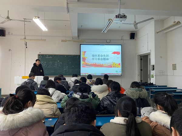 12月14日,动物医学182团支部组织开展“学习革命先辈崇高精神,争做又红又专时代新人”主题班会,在班会上,团支书方毅通过讲述董存瑞烈士炸碉堡,刘胡兰烈士坚贞不屈,黄继光烈士堵枪口等革命先烈的英勇事迹,带领团员青年学习了革命先烈们在为党为国、为民族谋求解放的历史进程中不怕牺牲,无私奉献,大公无私的榜样精神。团员青年们在听完革命先烈的感人事迹后,纷纷有感而发。“我们要学习革命先烈顽强拼搏的奋斗精神,要继承和发扬敢于斗争、敢于胜利的革命精神,始终保持昂扬向上的精神状态,奋发进取、开拓创新,扎扎实实地做好各项工作。”团员岳梦龙说。