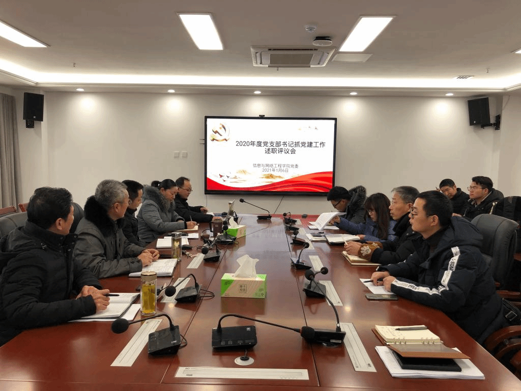 为推动全面从严治党向基层党支部延伸,全面提升学院党建工作水平,根据《中共BB手机官方网站_BB(中国)委员会关于开展2020年度基层党组织书记抓党建述职评议考核工作的通知》文件精神要求,1月6日下午,信息与网络工程学院在龙湖校区综合信息中心西附楼416会议室召开党支部书记抓党建述职评议考核工作会议,学院党委委员、党支部书记、党支部委员、教师代表参加会议,会议由信息与网络工程学院党委书记王振其主持。
