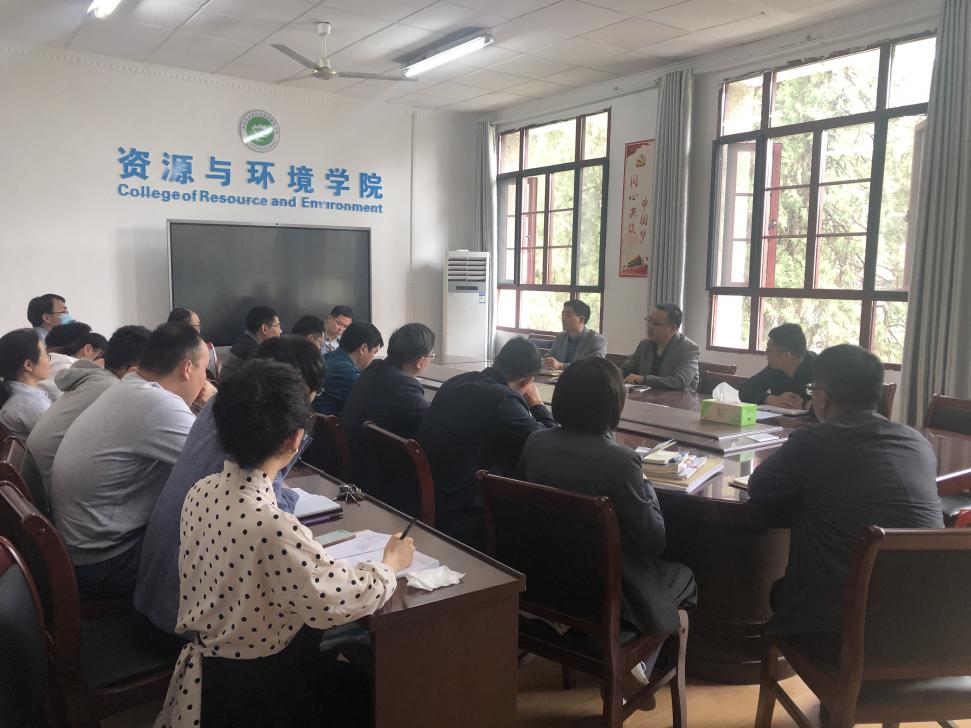 5月7日下午,资源与环境学院在东办公楼207召开2020—2021学年度第二学期全体教职工大会,部署安排学院重点工作。资环学院党总支副书记沈树周,院长李孝良,副院长邹海明、李飞跃以及全体教职工参会。会议由党总支副书记沈树周主持。