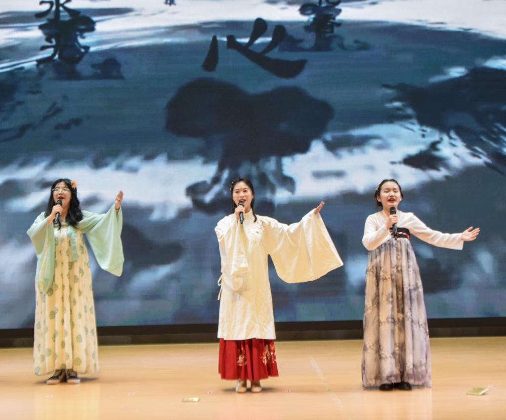 工商管理202班大合唱《国家》,管院学子用歌声献给祖国母亲,深情的表达对国家的热爱。方辛老师和同学们带来的舞蹈《红昭愿》用现代新鲜方式来表达了昭君的看不见的孤独与挣扎。话剧《教你拍马屁》和相声表演《博览群书》让同学们在欢声笑语中也深入思考要在文化传承和创新中取其精华去其糟粕。