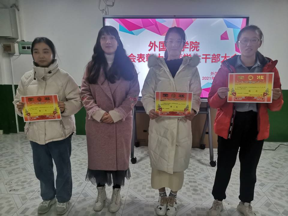 在干部大会上,陈慧中、宋兵兵、张薇薇分别布置了各自分管的工作,如:奖学金使用管理、安科E创项目申报、安全稳定、疫情防控、学风建设、意识形态、外语文化节闭幕式晚会、学籍异动等内容。在表彰会议上,与会老师们为获奖运动员颁发奖状并合影留念。宋兵兵宣读了《外国语学院学生在BB手机官方网站_BB(中国)第30届运动会的通报表扬名单》,张薇薇宣读《外国语学院在校第30届运动会中获奖运动员名单》,院学生会执行主席桂纪昌对本次校运动会进行了总结发言。