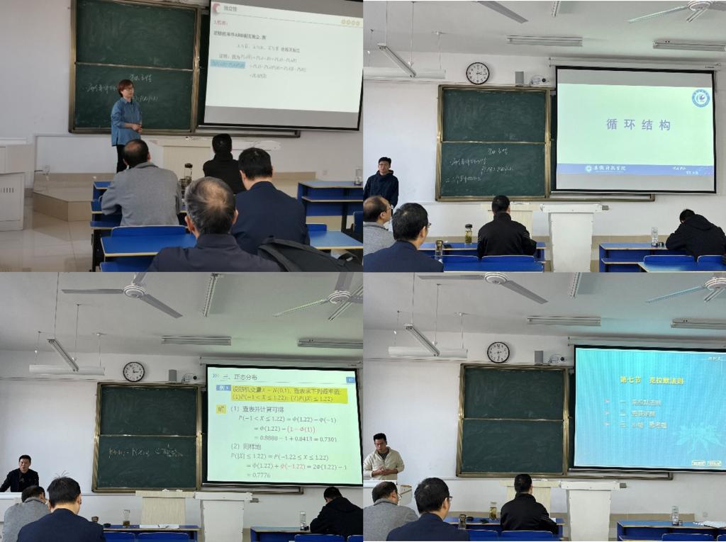 随后,新进教师们利用课件结合板书逐次开展了试讲。试讲结束后,各位主任和指导教师从教学设计、讲课技巧、语言表达等方面提出了许多中肯的建议。校教学督导员庄锁法对本次活动做了细致全面的点评,对新进老师在课程准备、内容选题等方面肯定的同时,提出了三点建议:一要舍得花时间、花精力备好课程,做到课程目标明确、课程内容充实、知识结构严谨和教学过程顺畅;性等方面教学过程应该注意;二要适当放缓语速和节奏,做到张弛有度;三要加强教学基本功训练,做到课件美观、板书合理规范