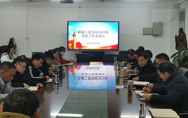 为深入学习贯彻党的二十大精神,科学谋划学院2023年及今后一段时期重点工作思路和目标任务,推进学院高质量发展,机械工程学院于2023年2月12日在笃行楼409学院会议室召开2023年党政工作务虚会,学院党政领导、科以上干部和各系、中心、教学督导组、专业认证办公室及各专业负责人共计26人参会,会议由党委副书记、院长陈丰主持。