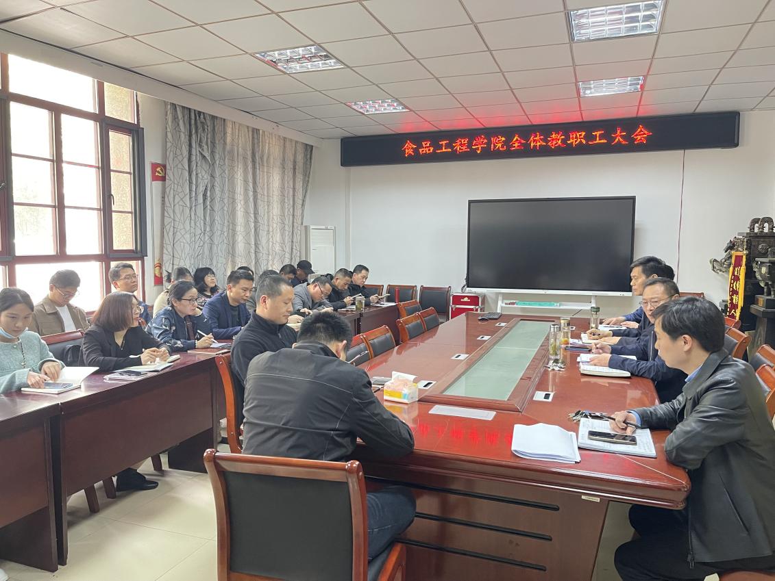 4月12日下午,食品工程学院召开全体教职工大会,就本科教育教学审核评估工作进行再动员、再部署,推进审核评估工作落地落实落细,会议由食品工程学院党委书记付光玺主持,院长杜传来、副书记王广良、副院长郑海波、副院长翟立公及全体教职工参加此次会议。