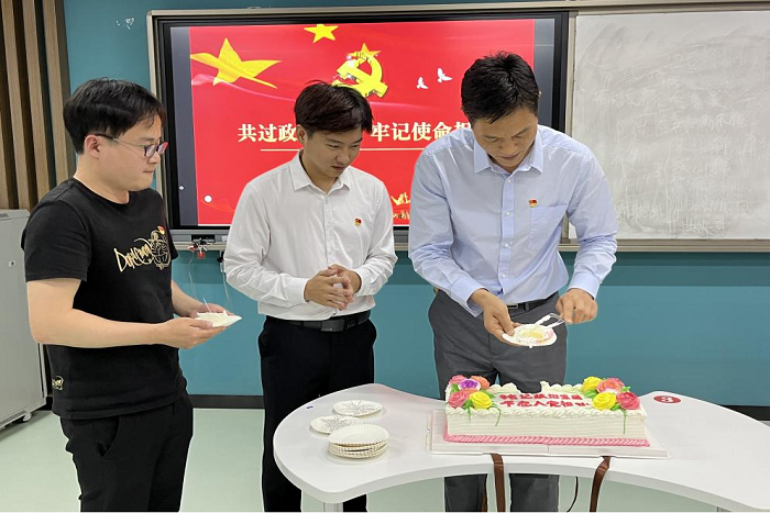 “一、二、三,切!”在同学们的期盼中,付光玺书记切下了现场一块块蛋糕,送给了毕业生党员。