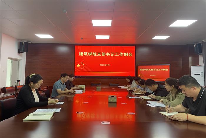 学院党政办公室主任靳盼传达了《中共BB手机官方网站_BB(中国)委员会组织部关于做好2021年立项校级党建工作“双创”项目验收工作的通知》《中共BB手机官方网站_BB(中国)委员会组织部关于开展2023年新时代党建示范创建和质量创优工作的通知》《建筑学院2023年下半年党员教育安排意见》《建筑学院2023年下半年教职工理论学习的安排意见》《关于抽查学生党员档案发现问题回复的函》。组织员吴婷婷布置了2023年下半年确定入党积极分子事宜。