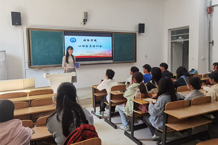 10月13日,财经学院在致知楼B111教室召开宿舍心理健康宣传员培训会。学院全体宿舍心理健康宣传员参会。会上,学院团委书记、心理辅导老师薛枫强调了宿舍心理健康宣传员的工作职责和角色定位,指出宿舍心理健康宣传员是心理健康教育工作中的一支重要力量,是校园心理健康四级预警工作网络中最基础、最前线,也是最重要的一级。她希望与会人员认真履行职责,构建好宿舍心理安全防线,为同学们营造良好的宿舍氛围,为宿舍搭建优质有效的社会支持系统。