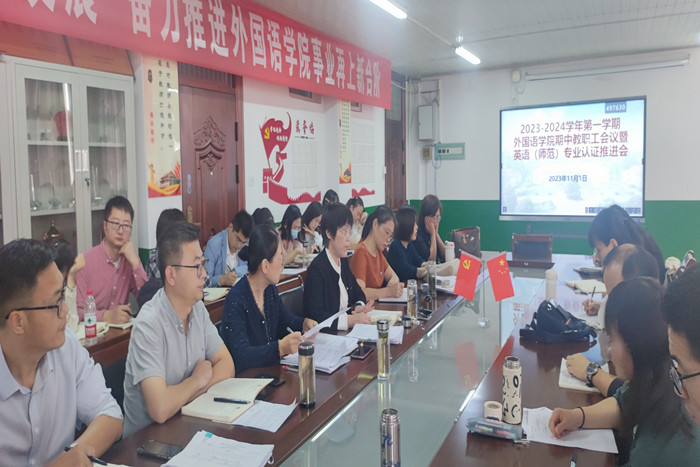 外国语学院召开2023-2024学年第一学期期中教职工大会暨英语(师范)专业认证推进会