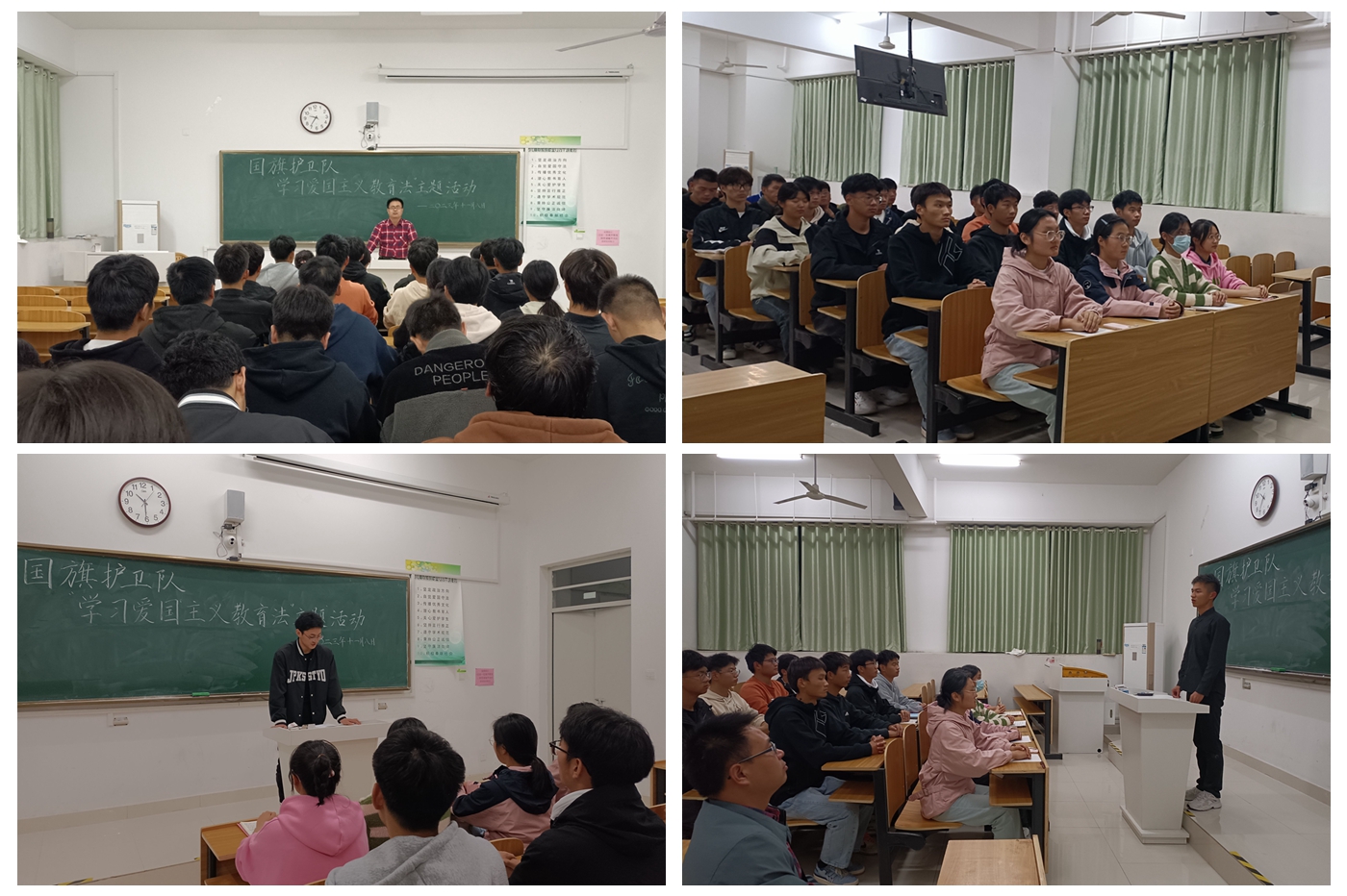 为加强校国旗护卫队团支部建设,强化理论武装,校国旗护卫队分别于11月8日在龙湖校区致知楼B108教室、11月6日在凤阳校区求知楼A107教室开展集中学习爱国主义教育法主题团日活动。党委学工部秘书、校国旗护卫队指导老师石志成应邀参加,国旗护卫队全体队员参加学习会并分享学习心得体会。