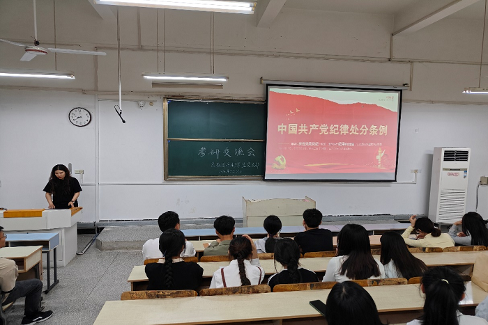 在学习经验分享环节,研究生党员代表上台分享了自己的备考经验和心得,从学习方法、时间管理、心态调整等方面进行了详细介绍,为本年度参加考研的本科生们提供了宝贵的经验参考。研究生党员还针对本科生们提出的各种疑问和困惑进行了耐心解答和指导,他们鼓励本科生们要早做规划、合理安排时间,确保备考过程的充实高效。现场,同学们积极互动,本科生们积极向研究生党员提问,就自己学习过程中遇到的疑惑和问题进行咨询。研究生党员们耐心细致地解答了每一个问题,并提供了针对性的建议和指导。现场气氛热烈而融洽,同学们在交流中相互学习、共同进步。