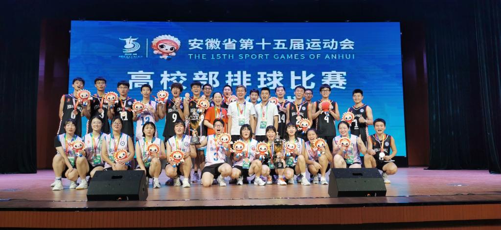 在这大地流火、芳香四溢的七月,激情在赛场燃烧。校男排健儿们不畏强手、奋力拼搏,先后战胜皖南医学院、安徽大学和中国科学技术大学队,以三连胜的佳绩小组出线。在半决赛中,以2:3惜败于本届冠军安徽农业大学,最终战胜中国科学技术大学,获得季军。女排克服重重困难,团结协作、互相鼓励,在小组赛中分别战胜安徽工业大学、合肥工业大学,不敌安徽师范大学以小组第二晋级四强,在半决定赛中负于本届冠军安徽中医药大学,在季军争夺赛中战胜安徽医科大学,最终荣摘铜牌。在本届省运会中,校男女排比翼齐飞,赛出了水平、赛出了安科学子风采,实现了我校在该项目上的历史性突破。