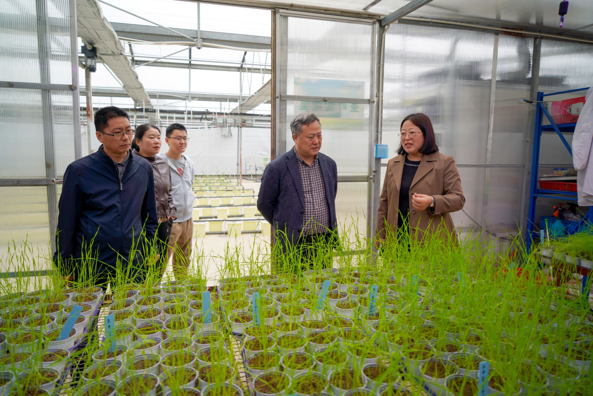 在校考察期间,潘灿平院士参观了农学院科研温室和植物保护平台,并与平台师生进行深入交流和现场指导。他对植物保护学科教师取得的工作成绩给予了肯定,并为我校植物保护学科的发展出谋划策,从多学科储备、产业结合、项目申报等方面提出很多建设性意见。