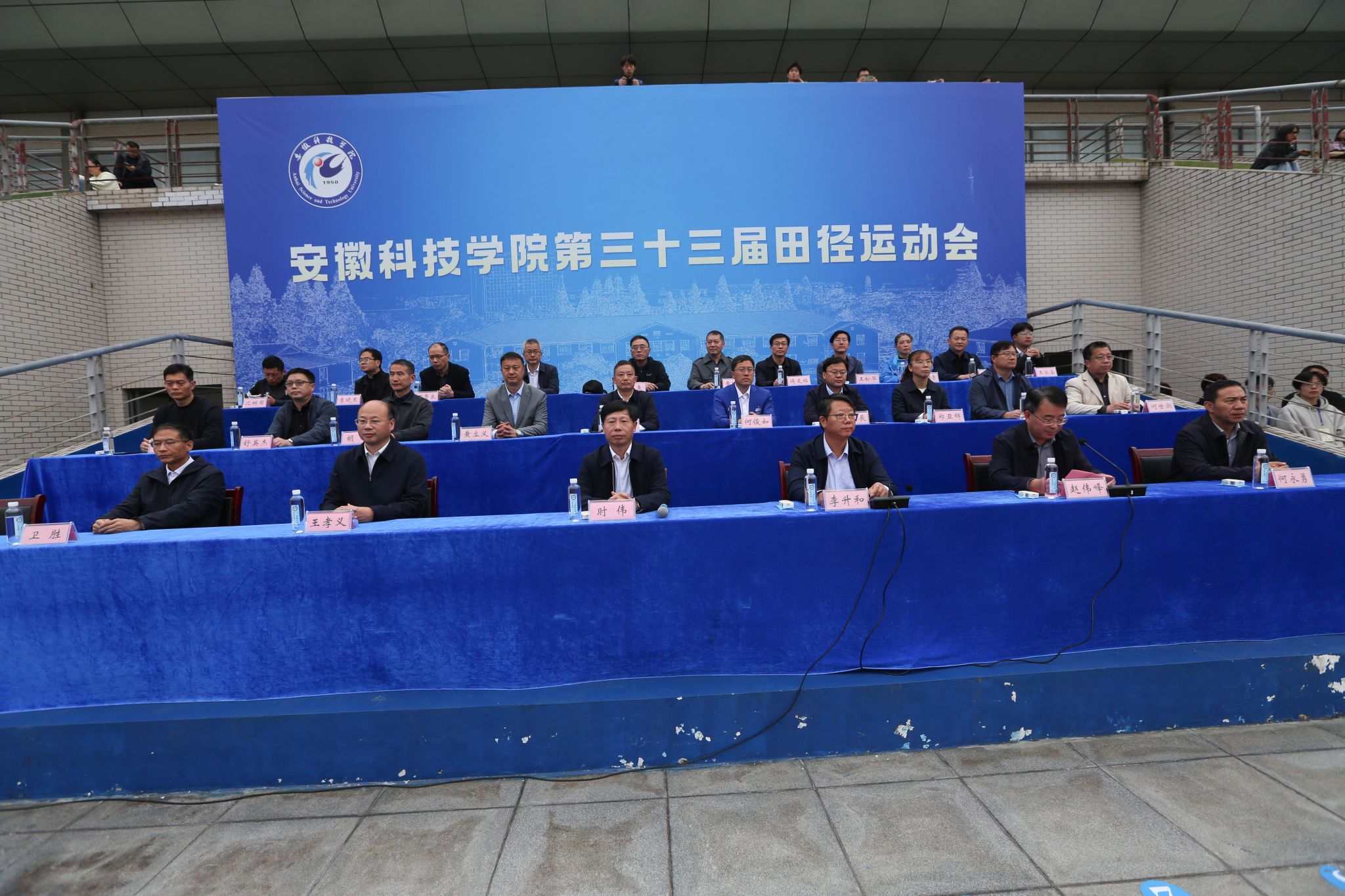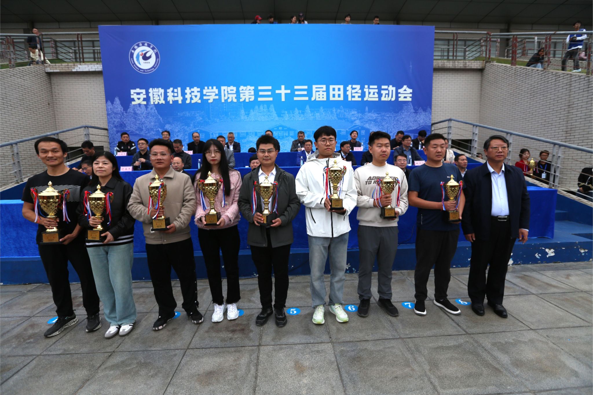 经过两天紧张激烈有序的比赛,10月26日下午,我校第三十三届田径运动会圆满完成各项预定赛程在凤阳校区西区运动场闭幕。党委书记时伟,党委副书记、院长李升和,党委委员、副院长王孝义,党委委员、副院长赵伟峰,党委委员、机关党委书记卫胜,党委委员、党委宣传(统战)部部长何永勇出席闭幕式并为获奖单位颁奖。校体育运动委员会委员、全体裁判员、运动员和各学院师生代表参加闭幕式。闭幕式由赵伟峰主持。
