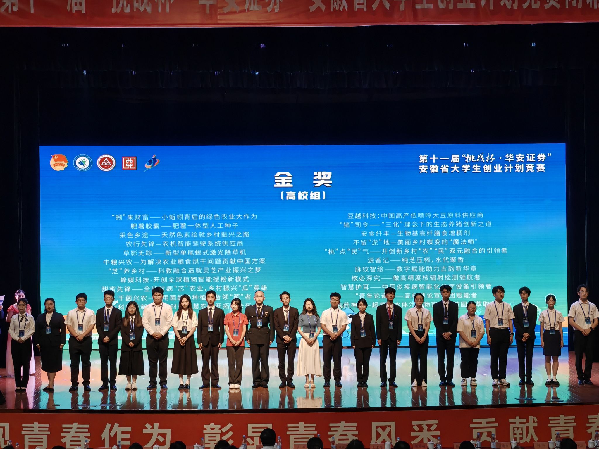 青春筑梦,科创报国。6月20日下午,由团省委、省教育厅、省科协、省社科院、省学联共同举办的第十一届“挑战杯·华安证券”安徽省大学生创业计划竞赛决赛在芜湖安徽工程大学胜利闭幕。我校9支队伍在380支决赛团队中突出重围,获金奖2项,银奖7项,学校荣获“优秀组织奖”。
