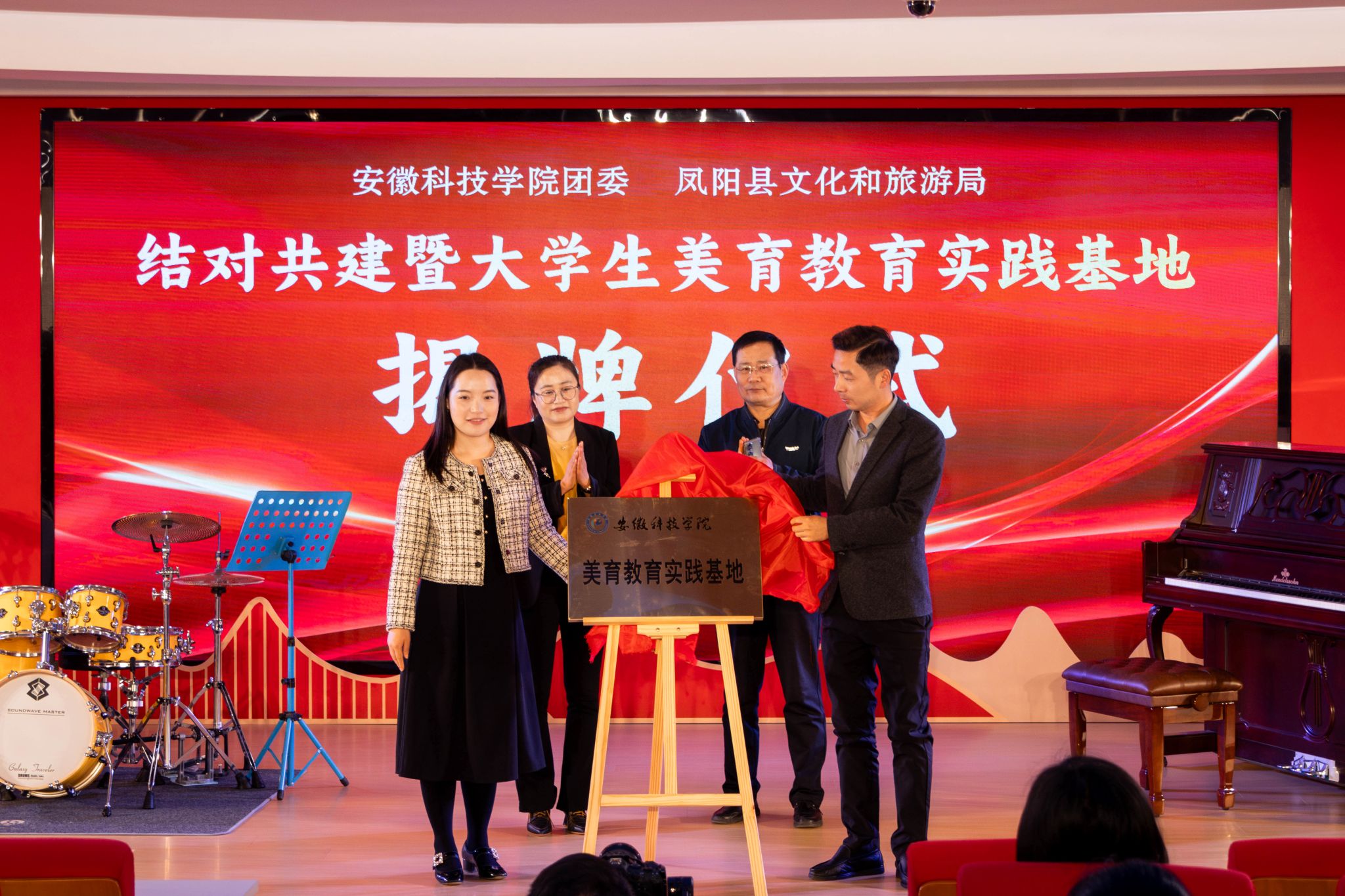 4月5日,BB手机官方网站_BB(中国)团委和凤阳县文化旅游局美育实践基地揭牌仪式在县文化馆举行。校团委副书记把安丹、凤阳县文化和旅游局党组成员、县文化馆馆长王兴为基地揭牌。凤阳县花鼓文化馆专家、凤阳花鼓传承人及我校师生参加了仪式。