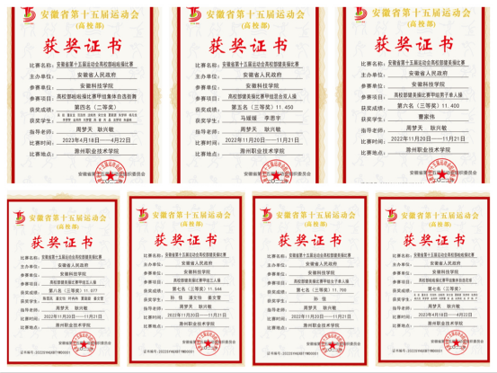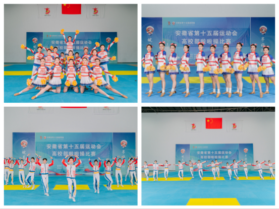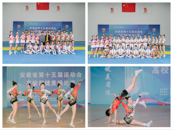 由安徽省人民政府主办,安徽省教育厅、安徽省体育局和滁州市人民政府承办,安徽省第十五届运动会高校部健美操、啦啦操两项比赛已于近日在滁州职业技术学院圆满落下帷幕。安徽省第十五届运动会高校部操舞类比赛和足球、篮球比赛是疫情防控政策调整之后,面向我省高校举办的第一个大型赛事,也是省十五运的收官之战。本次健美操、啦啦操比赛采用线上比赛的方式,参赛学校提交视频,裁判员现场打分。6月12日,比赛成绩公布,我校参赛7个项目全部获奖。其中啦啦操队获得二等奖一项,三等奖一项,健美操队获得三等奖五项,健美操项目实现了省赛成绩的历史性突破。