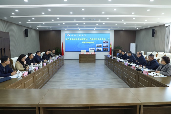 王孝武和赵良庆对我校的热情接待和硕士学位授予单位创建经验毫无保留的分享表示感谢,对我校近年来在学科发展、学位点建设、科学研究等方面取得的显著成就表示赞赏,简要介绍了安徽新华学院的办学历史、基本情况与发展规划等,希望两校进一步加深合作,拓宽领域,互帮互助,携手共进。