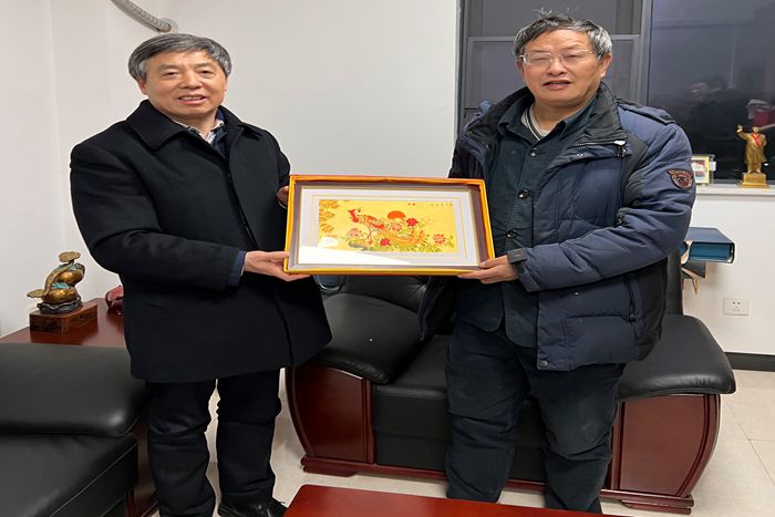 会谈后,蒋德勤代表学校向印遇龙院士赠送了凤阳地方特色纪念品凤画,并邀请印院士方便时到校实地考察、指导,印院士欣然答应。