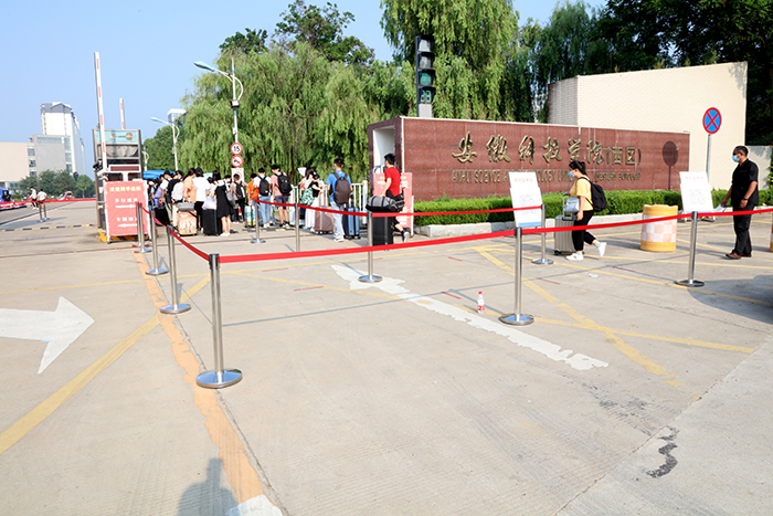 8月29日起,我校龙湖校区、凤阳校区将迎来秋季学期12067名学生返校。29日上午,笔者在两校区学生返校现场看到,返校第一天学校秩序井然,在返校专用通道,测量体温、更换口罩、手部消毒、查验安康码等环节井然有序地进行。“丹桂飘香 热烈欢迎广大同学平安返校”,校园内主干道横幅悬挂,氛围热烈,安静了几个月的校园瞬间热闹起来,蓬勃朝气伴随着同学们的平安归来瞬间充满了整个校园。