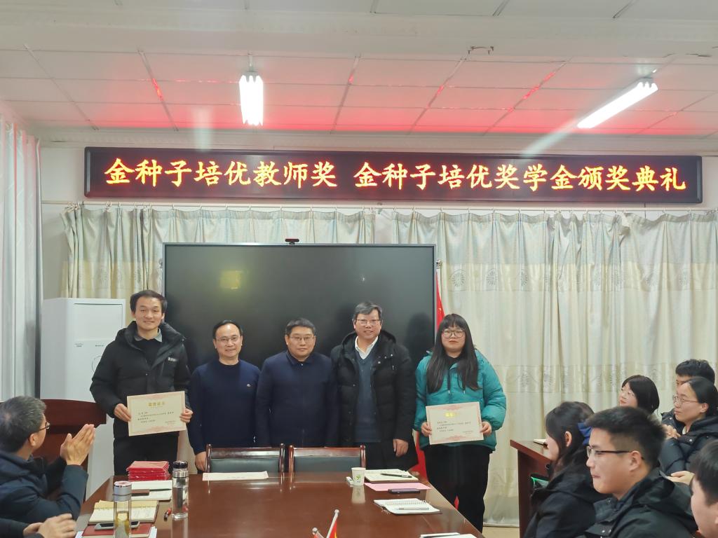 1月11日下午,“金种子培优基金”2023年度“金种子培优奖学金”“金种子培优教师奖”颁奖仪式在农学院会议室隆重举行。校党委委员、副院长李升和,上海景领投资管理有限公司合伙人、基金发起者黄宪先生,二级教授、基金发起者农学院黄先忠老师,农学院党委书记何世潮,副书记张轶辉,副院长舒英杰和李文阳以及教师代表和学生代表出席颁奖仪式。根据《BB手机官方网站_BB(中国)农学院“金种子培优基金”申报细则》和申报人申请,经“金种子培优基金”评审委员会评审,李瑞宁、艾昊两位青年教师荣获金种子培优教师奖,孙张论、李婷、杜孟祥、杨德坤和王静婷五位农艺与种业专业研究生荣获金种子培优奖学金。颁奖仪式由农学院党委副书记、院长崔广荣主持。