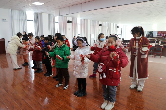 花鼓课上,赵二雪、张雨洁给小学员们介绍了花鼓的历史和基本节奏,示范了花鼓的动作要领、基本鼓点和眼神要求。小学员们一边认真听老师讲解,一边架起花鼓尝试练习敲击动作。赵二雪、张雨洁走到小学员面前进行动作指导,帮助大家更好的掌握动作要领,课堂氛围活泼欢快。